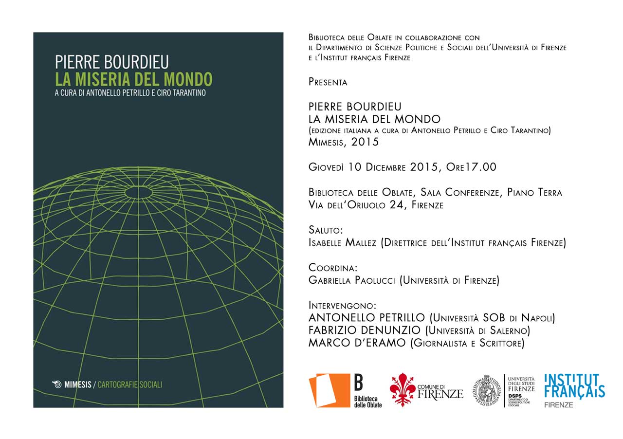 Giovedì 10 dicembre 2015 viene presentata a Firenze l’edizione italiana della Miseria del mondo. Scarica la locandina.